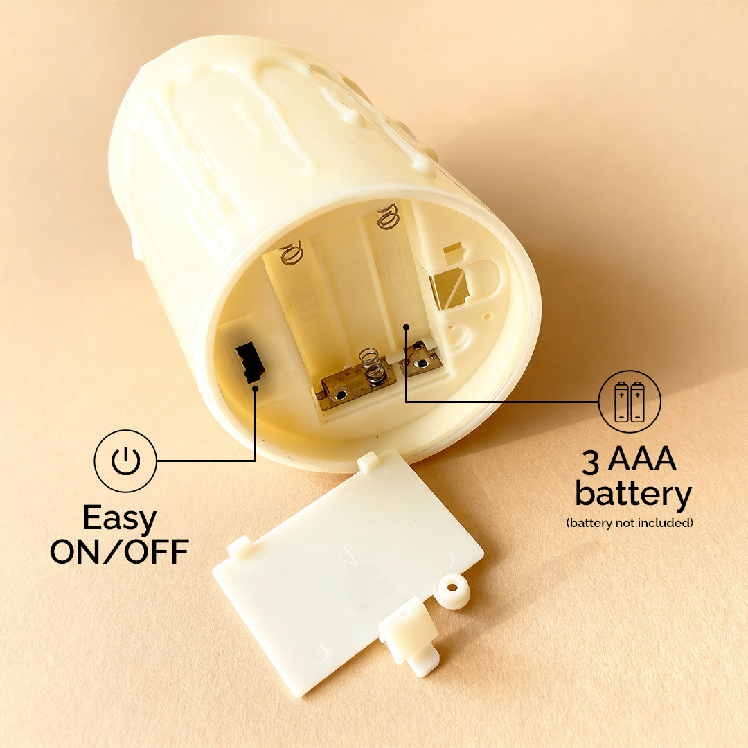 Create a warm, cozy ambience without the worry of flames. Our melting wax LED candles are designed to look just like real candles — complete with a natural melted wax effect and a soft flickering glow that mimics a real flame beautifully.